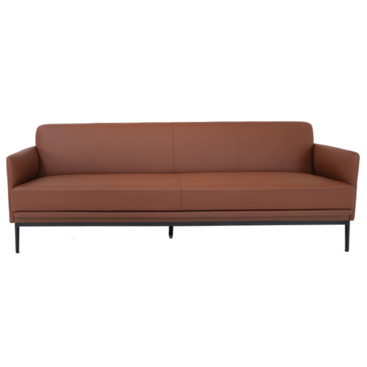 The Aspen Lounge is ideal for receptions and common areas, offering generous spacing and a soft, supportive seating experience. Integrated armrest work in tandem with high density resilience foam to deliver ergonomic support. The Aspen range is suspended by a sturdy steel tube frame and lightweight aluminium legs to offer a weight capacity of up to 540kg. Available in a smooth Deep tan upholstery. For single seating options, see the Aspen Single Lounge.