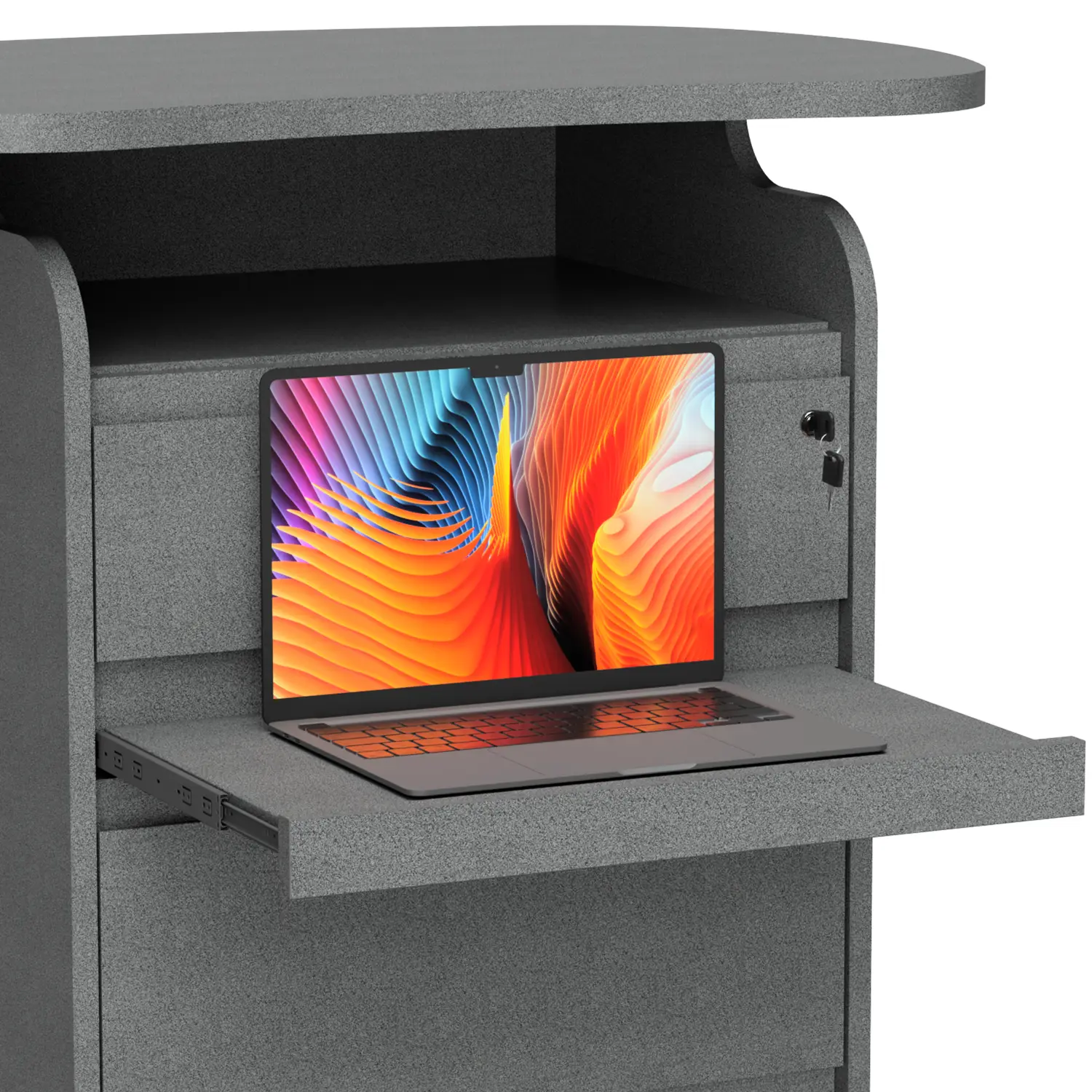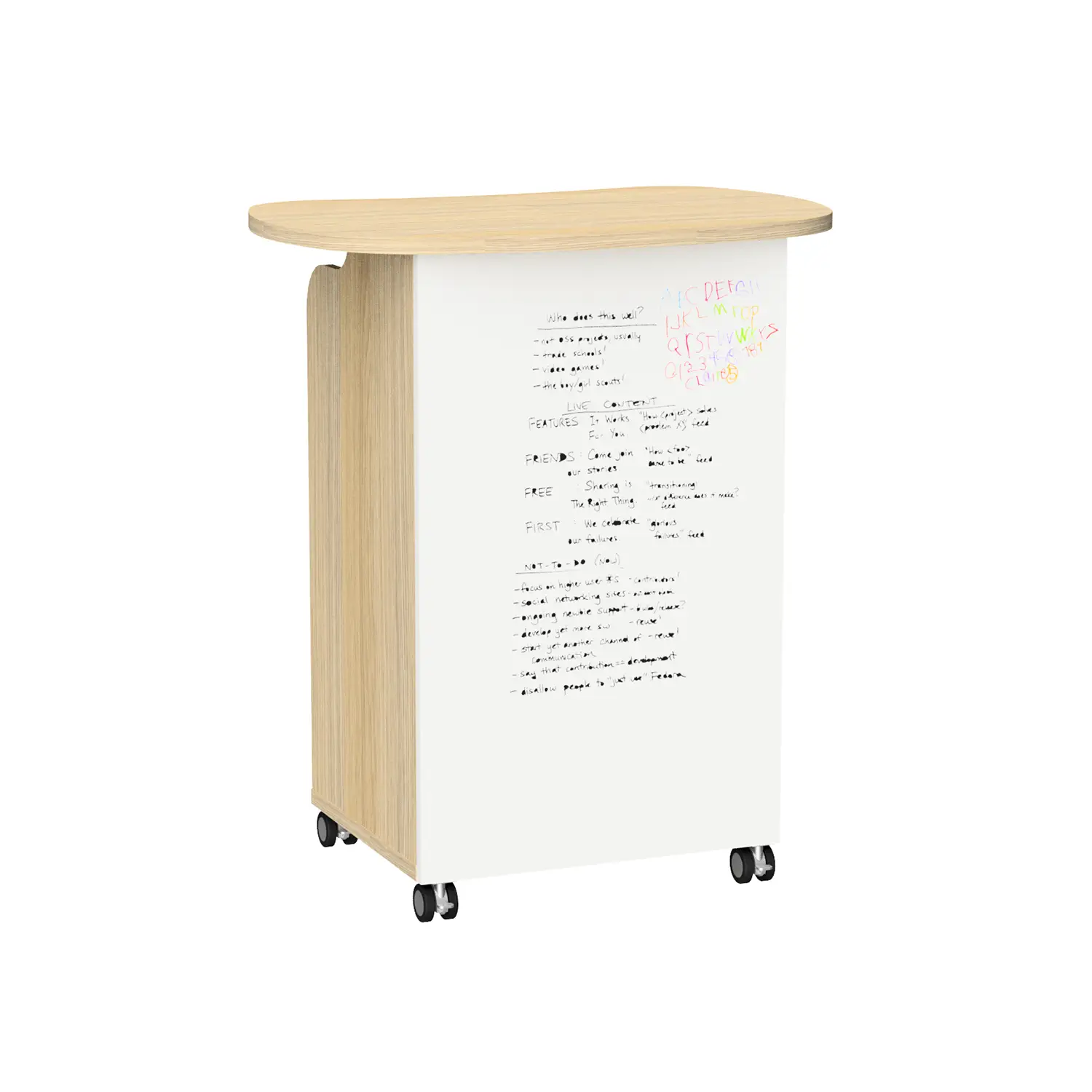 The Beacon Teacher Station is a mobile, standing teacher desk and pod developed by Schoolfurn, featuring lockable castors, storage and an optional whiteboard front.