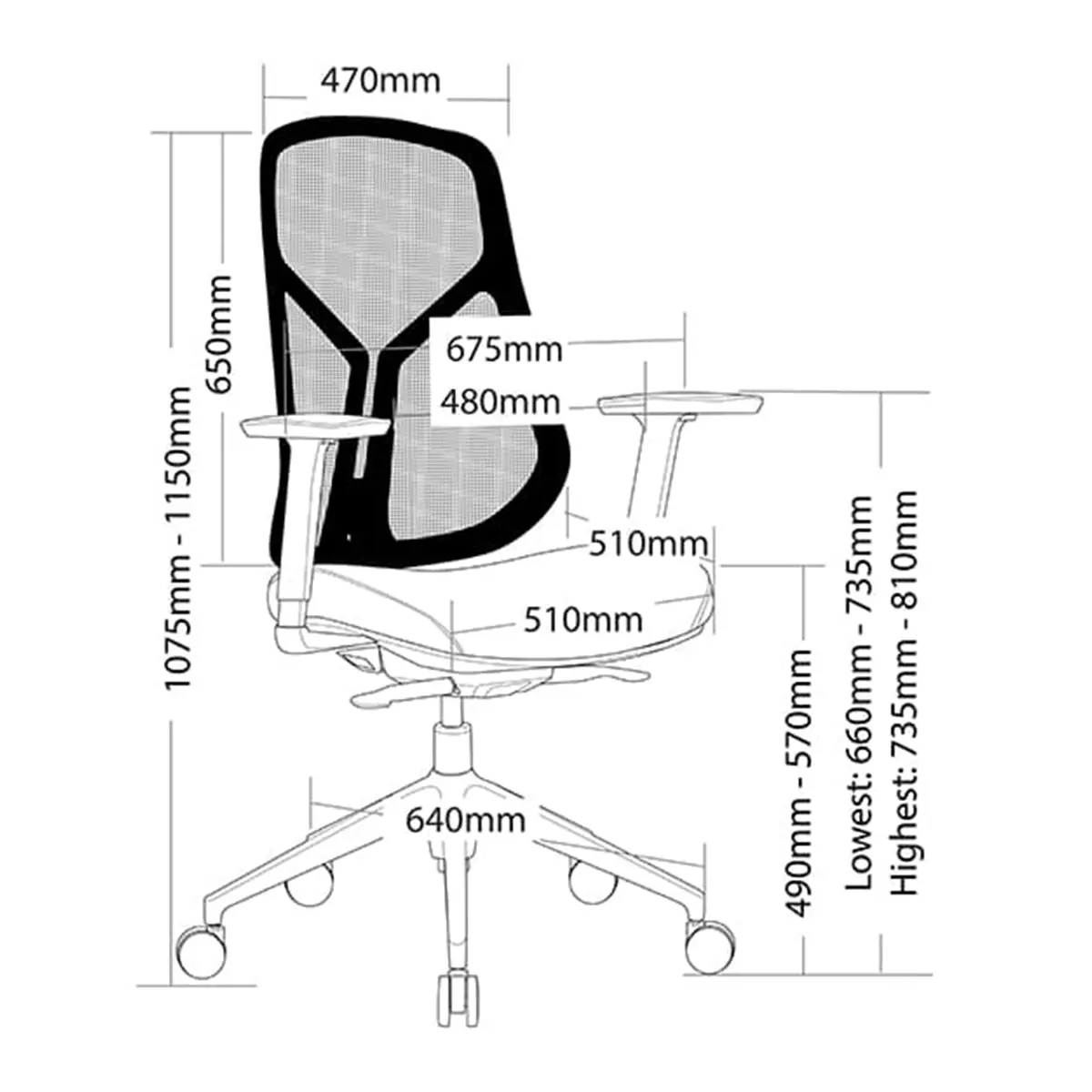 Chairs come with built-in armrests as standard to best suit your needs. Chairs come in Black upholstery with a black mesh backrest as standard. Due to its classic design, the Bragg Mesh Chair provides a professional finish suitable for a variety of interiors. Complete your fit out by complementing with a Byron Desk or Core Meeting Table.