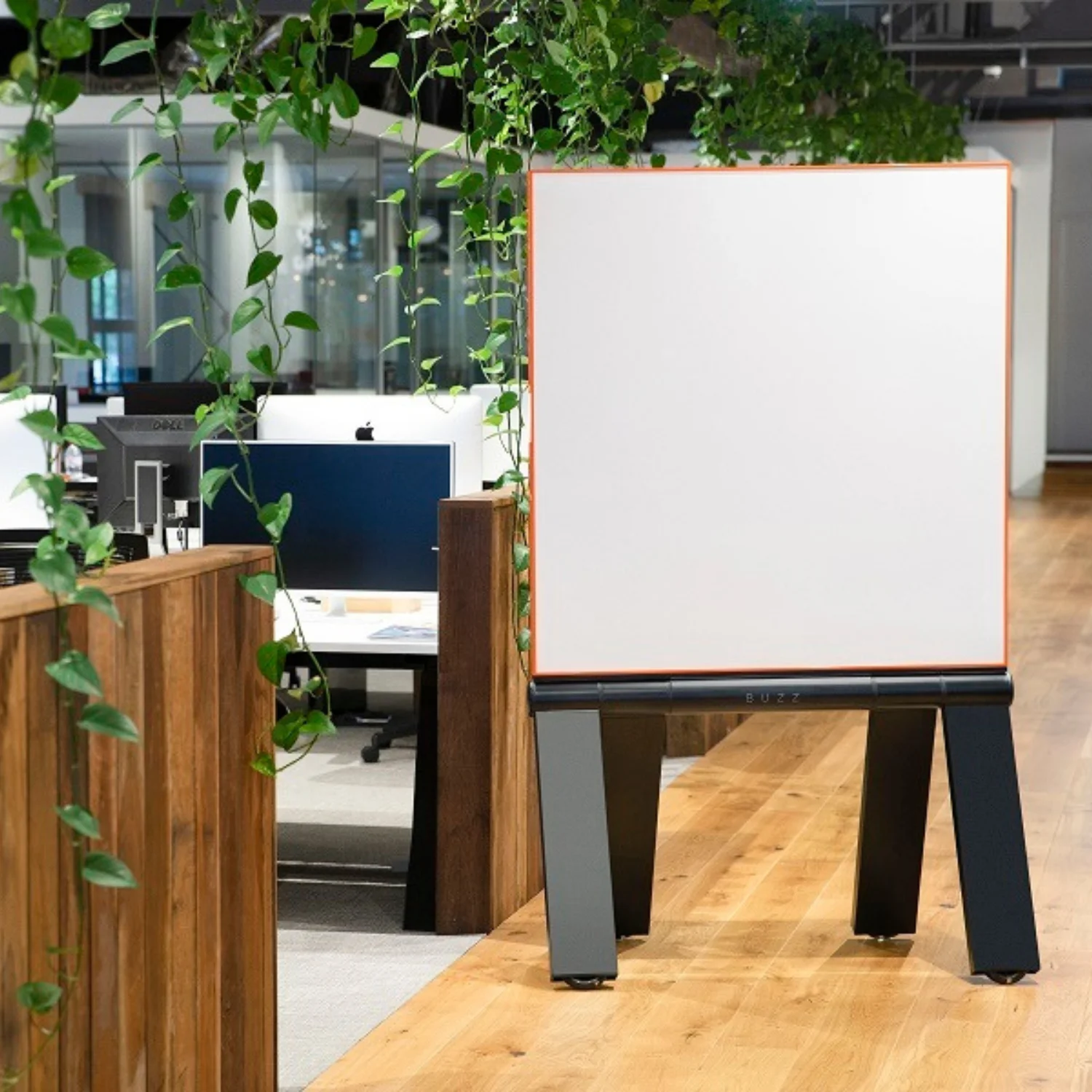 With a distinctive form and unique design,  the Buzz Whiteboard offers a consideration of functional movement. The Buzz Whiteboard creates an agile environment where thoughts and insights are easily shared. Create meaningful team moments. Move your meeting to where it’s required on easy glide wheels. Elegant design meets practical considerations, featuring a double sided Vitreous Enamel writing surface with 25 year writing warranty and a removable magnetic pen shelf.