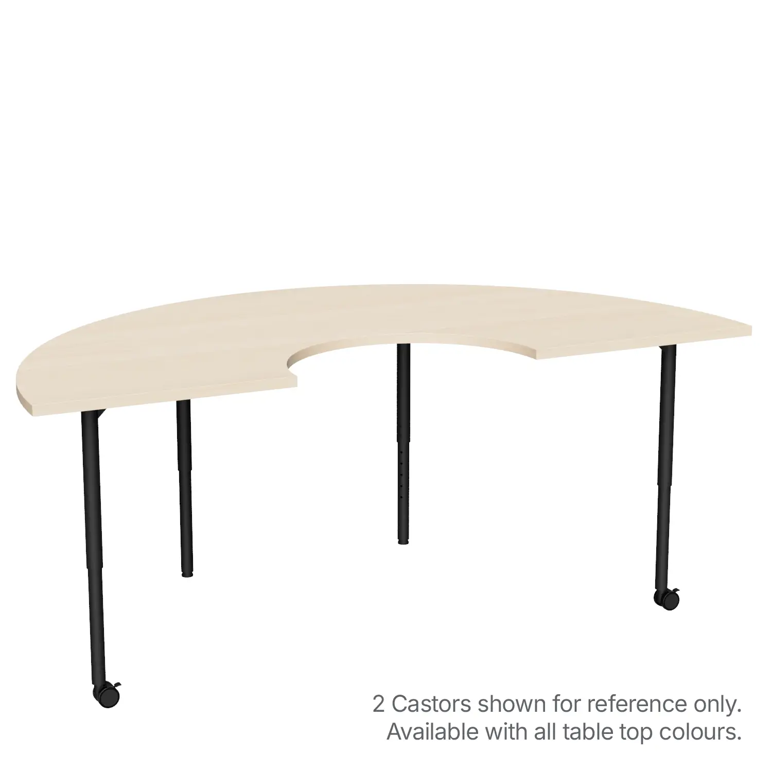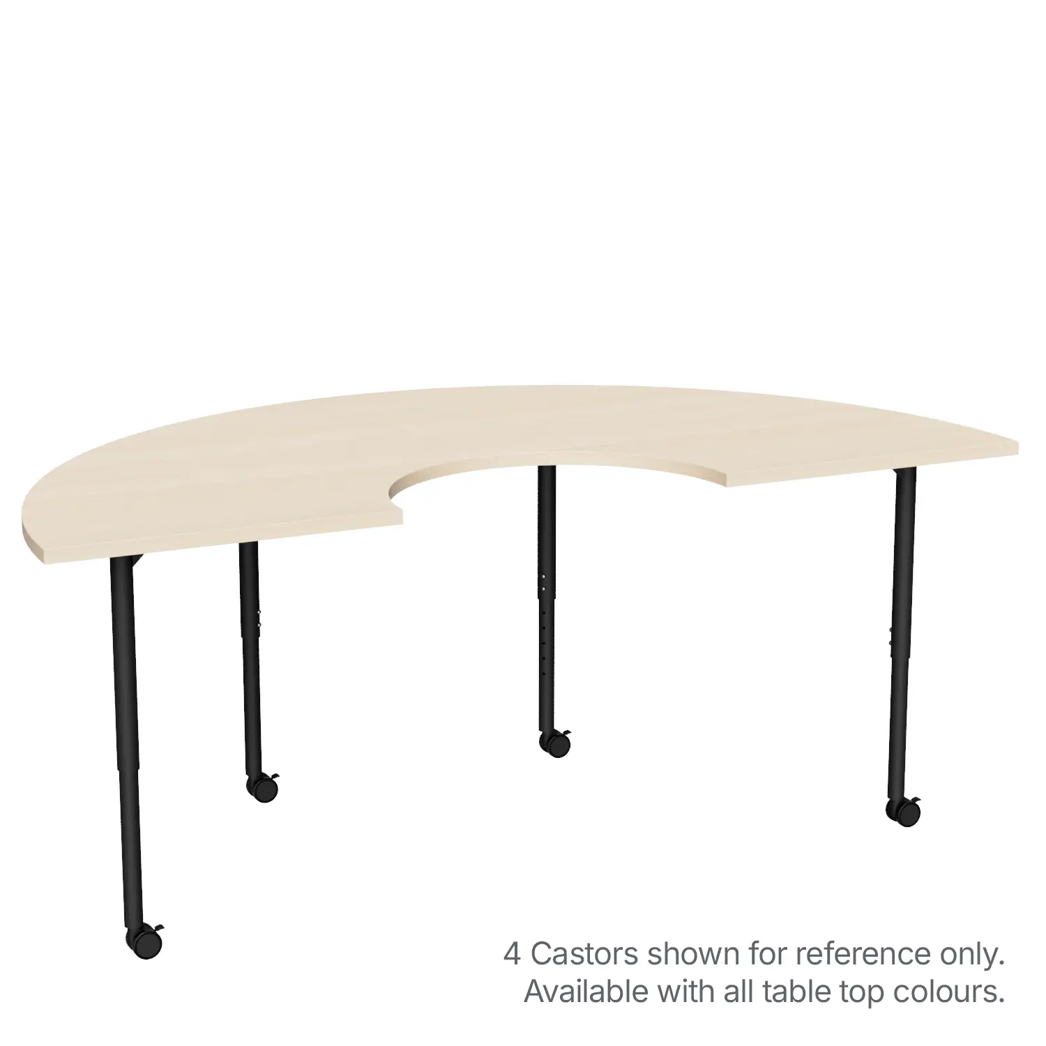 Gather round with a Focus Table, featuring a spacious crescent top that accommodates teachers & students alike for easy discussion and collaboration. With its modular design, Focus tables can be used individually or grouped together to create flexible fit outs. Popular for classrooms, STEM and Library spaces, tables are available with a fixed height frame or height adjustable legs, to suit primary and secondary heights. Focus Tables also come with a 10 year warranty for added value. For whiteboard surface options, check out our Focus Table Whiteboard Range.