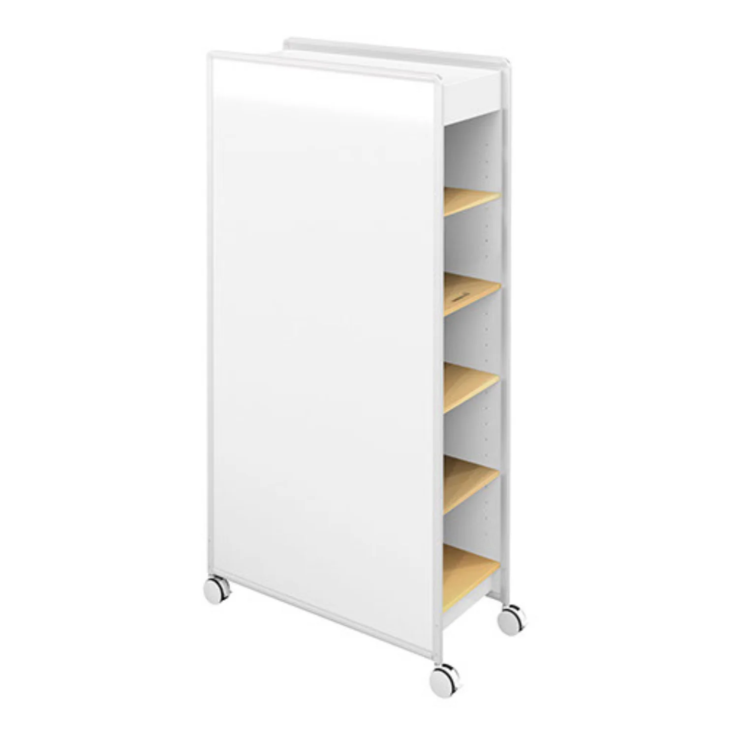 The Huddle Double Whiteboard is and easily movable double sided magnetic whiteboard with storage that is split into two making it perfect for shared and adaptable learning environments. Each end has three adjustable shelves giving 10 compartments in total for storage. To complete the kit, check out our Whiteboard Essentials.