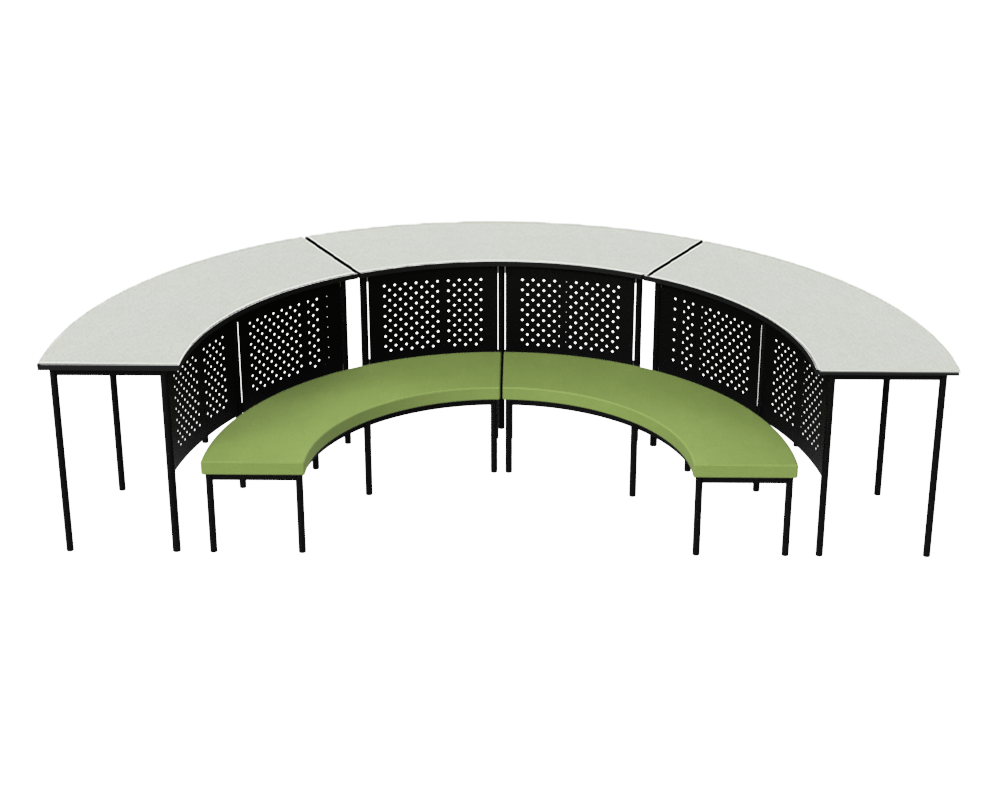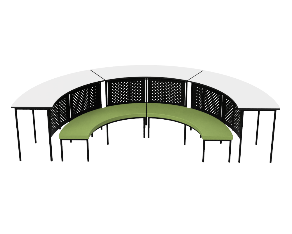 The Quad Slim Family is ideal for library spaces and large classroom areas, and now for only $2690+GST while stocks last! The Quad Slim Family includes 3 Thor Standing Tables and 2 Quad Slim Cave Lounges. Thor Tables feature perforated steel modesty panels for increased privacy. Table tops are available in a choice of Whiteboard, Natural Oak or Brushed Silver. The Quad Slim Cave features a black powder coat frame and is available in both fabric and vinyl upholstery. Choose from 12 colour combinations, or select ‘Custom Upholstery’ for more options. If you would like an alternative fabric or vinyl, let us know and we’ll tailor a package just for you.