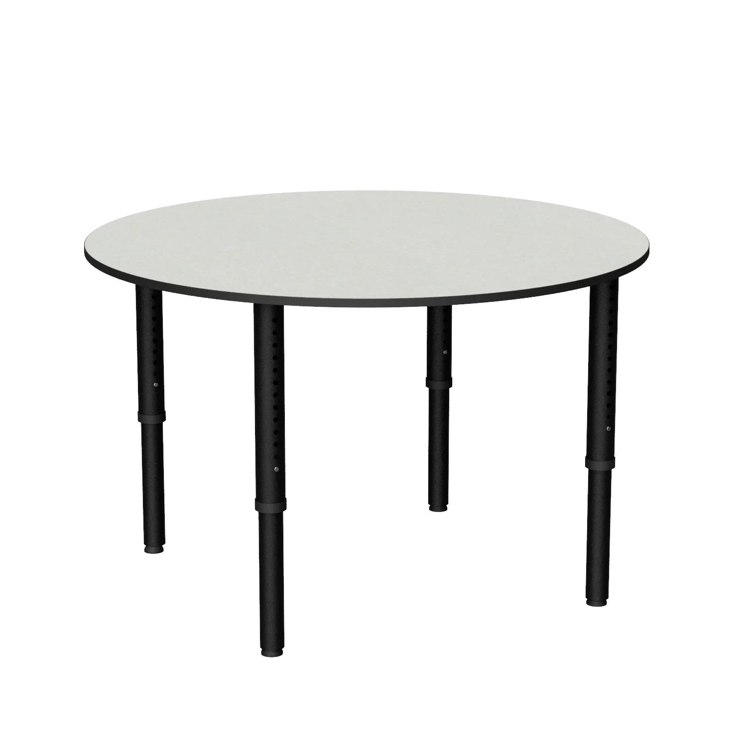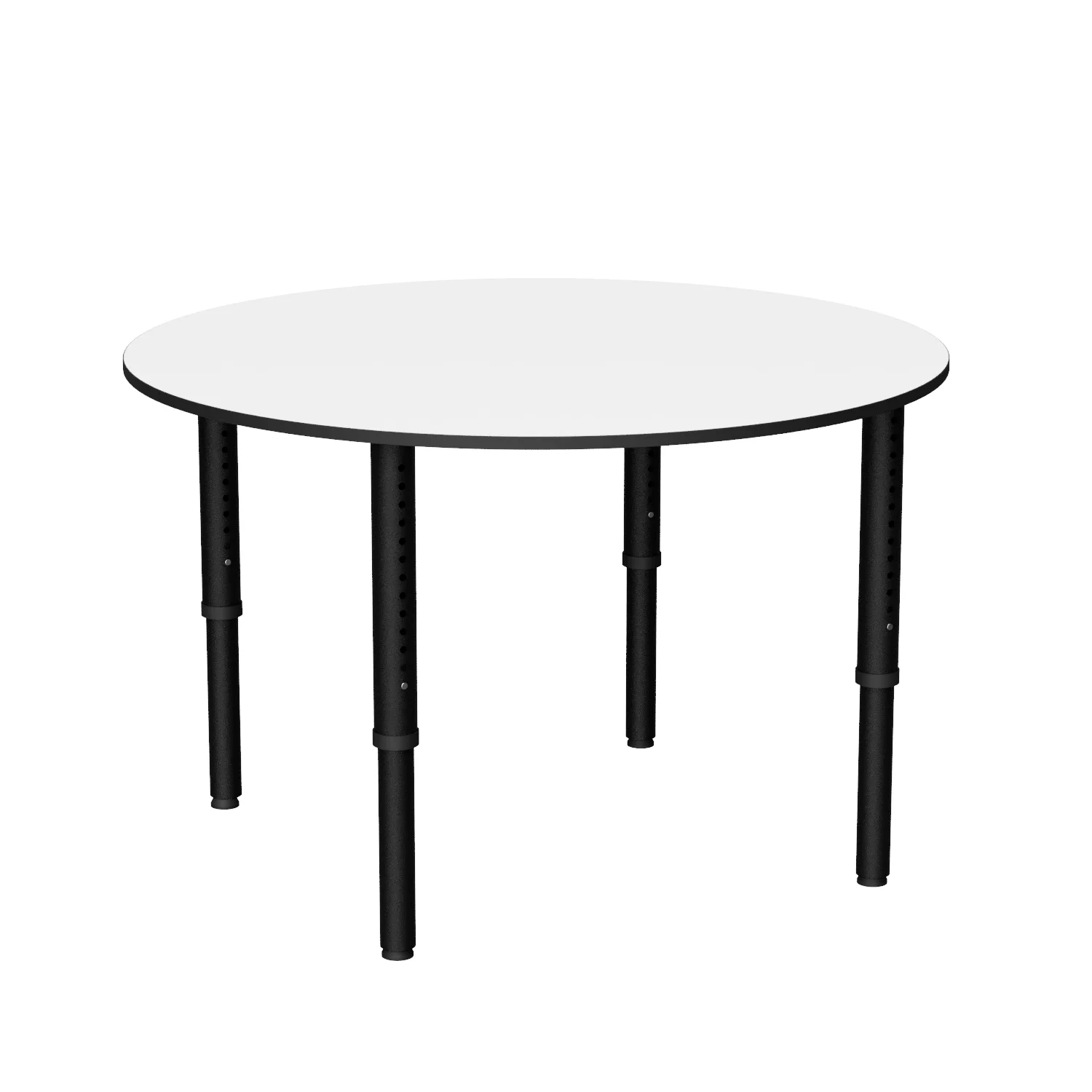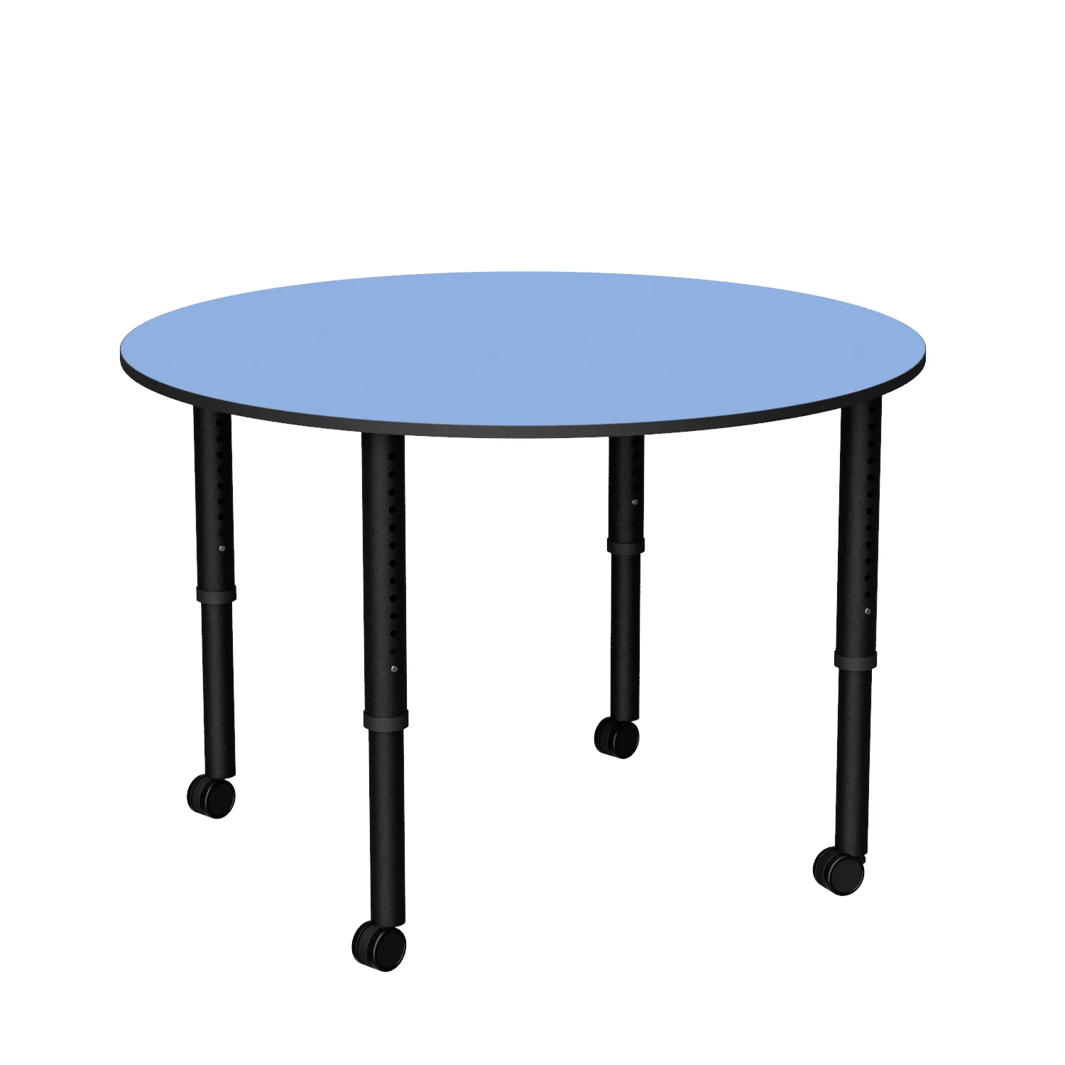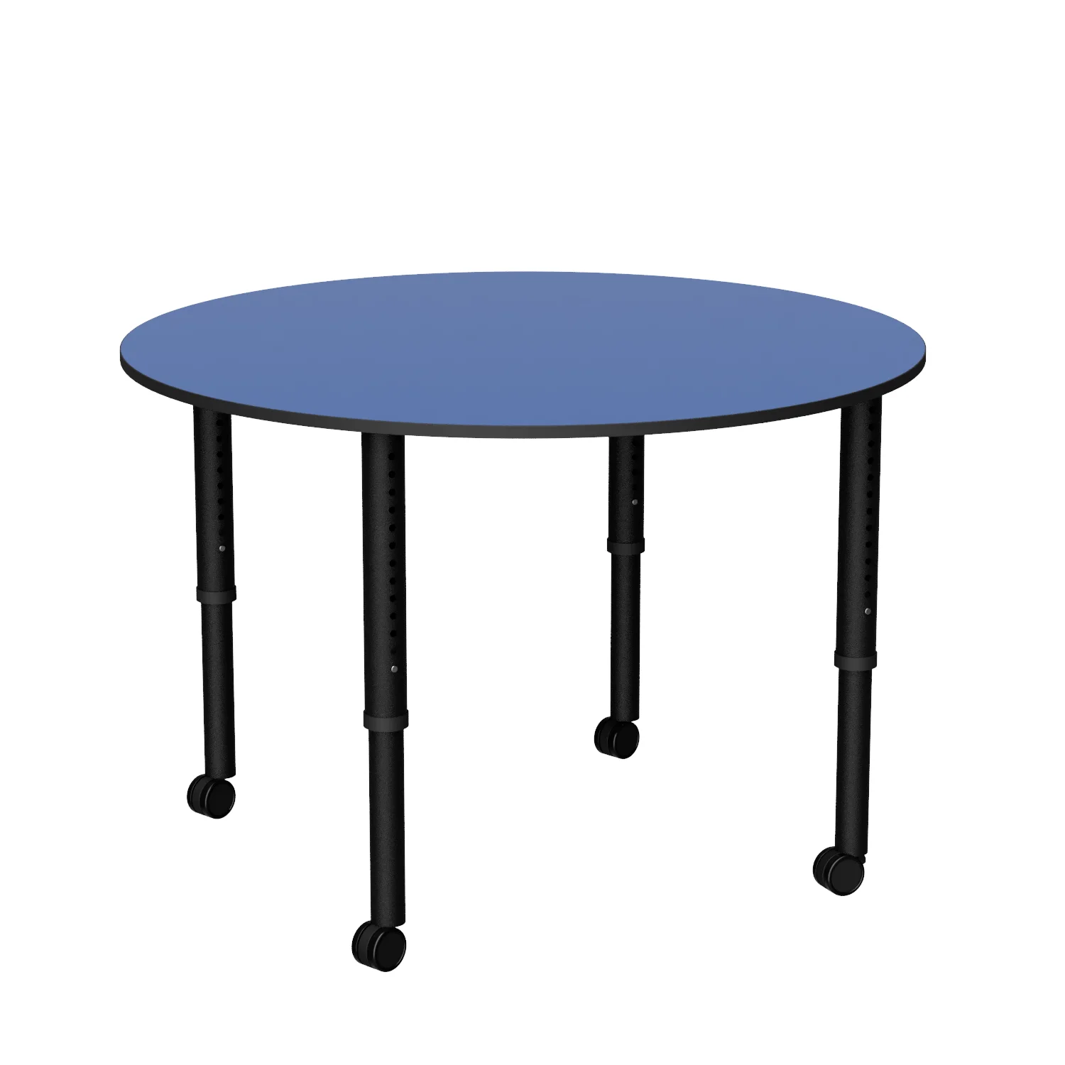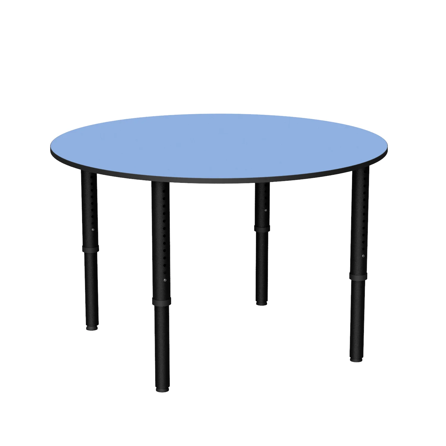 The Revolution Round is a height adjustable round classroom table, ideal for libraries and tutoring spaces with four easy-adjust legs on glides or castors.