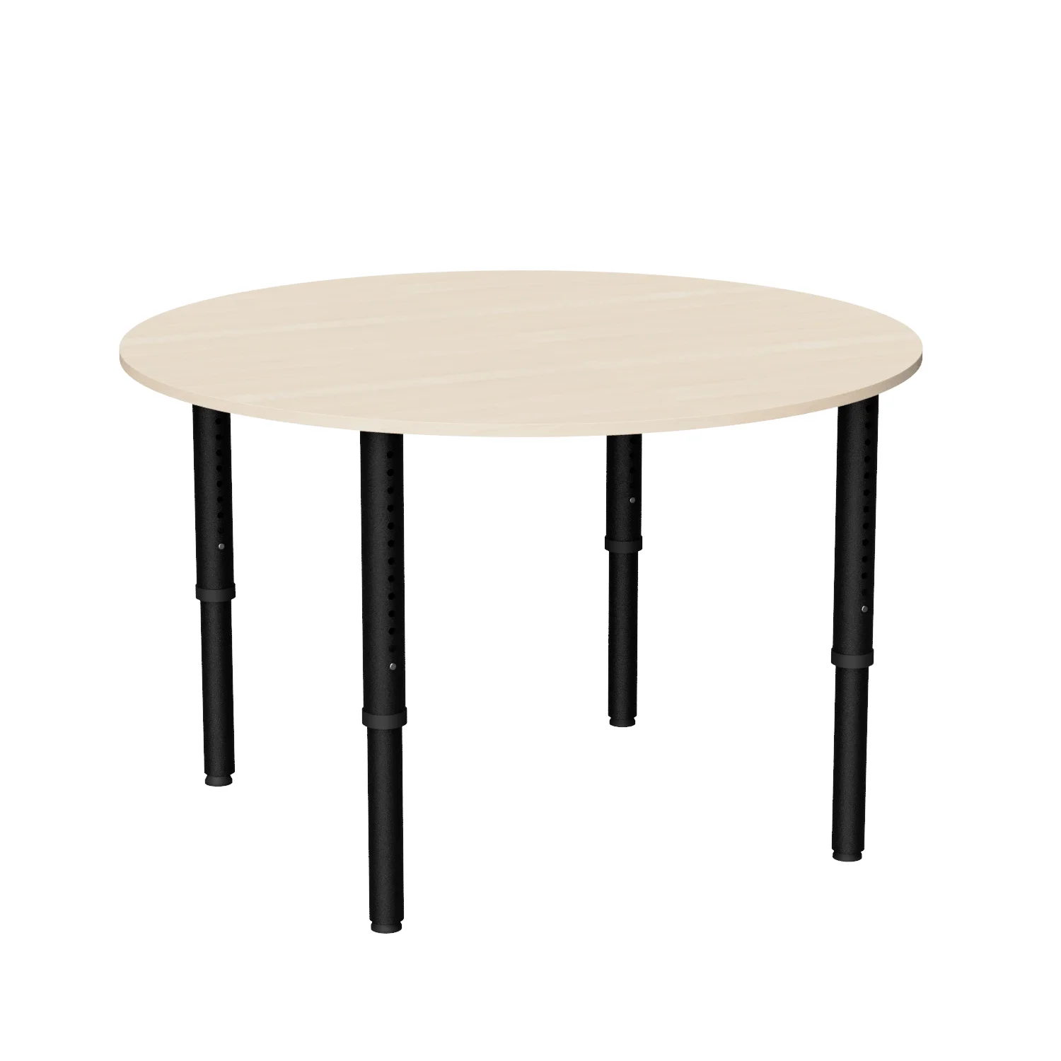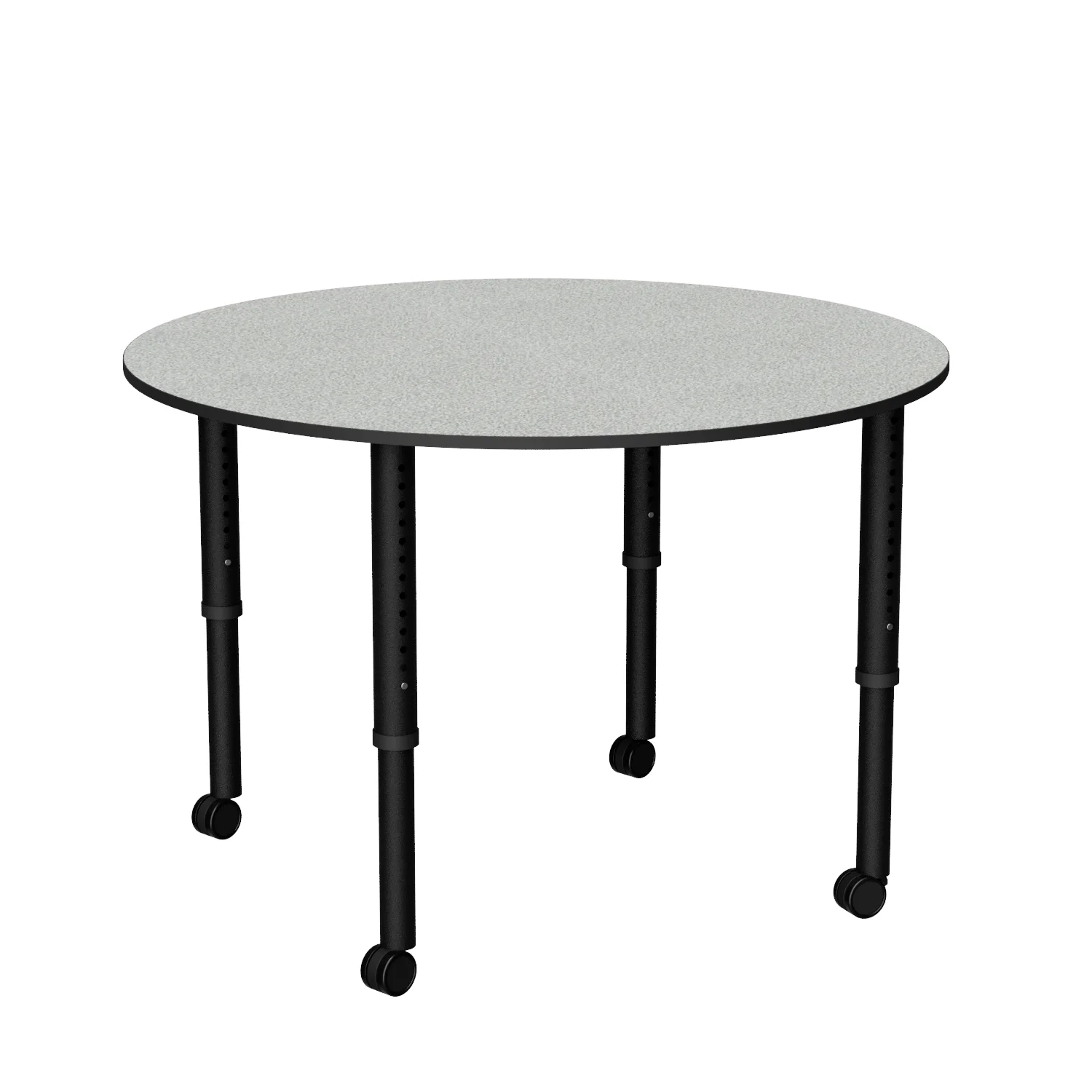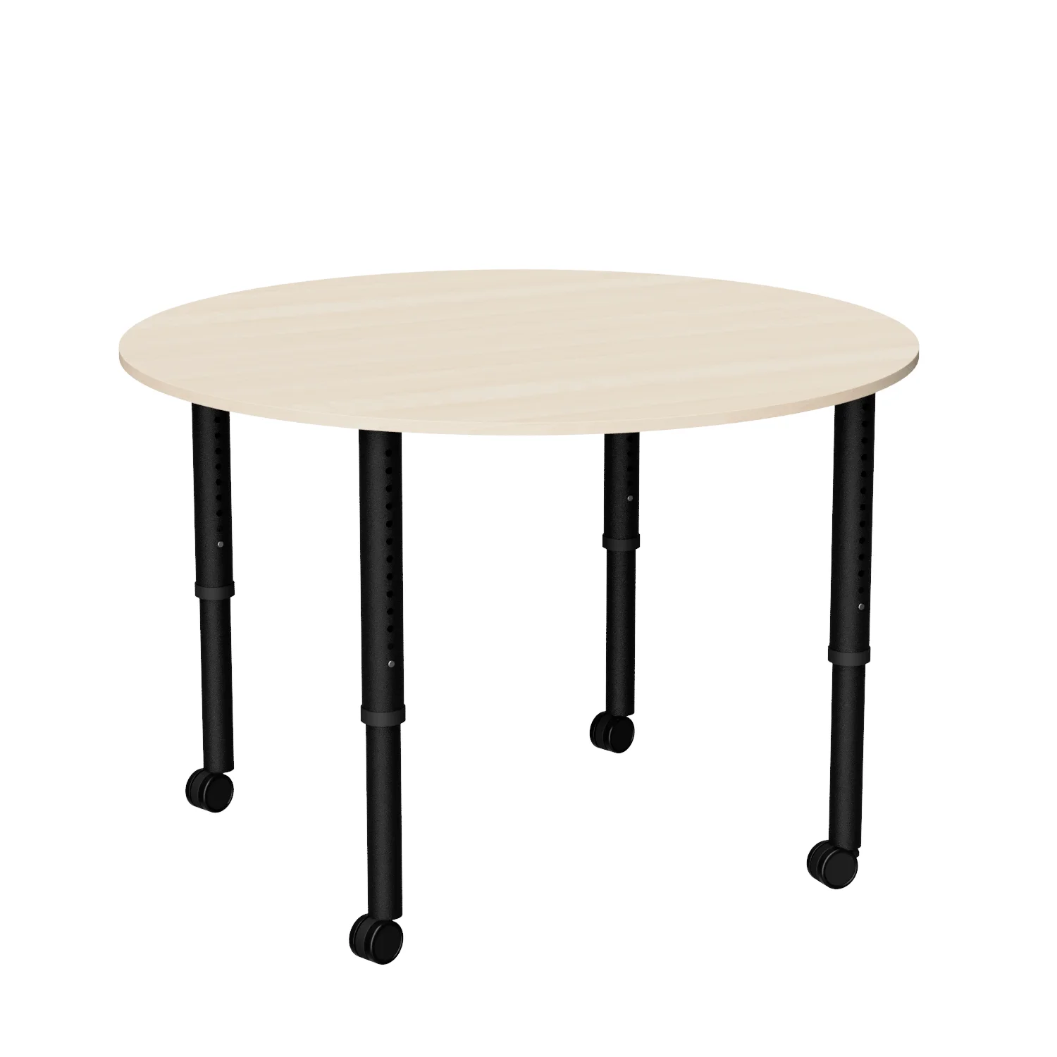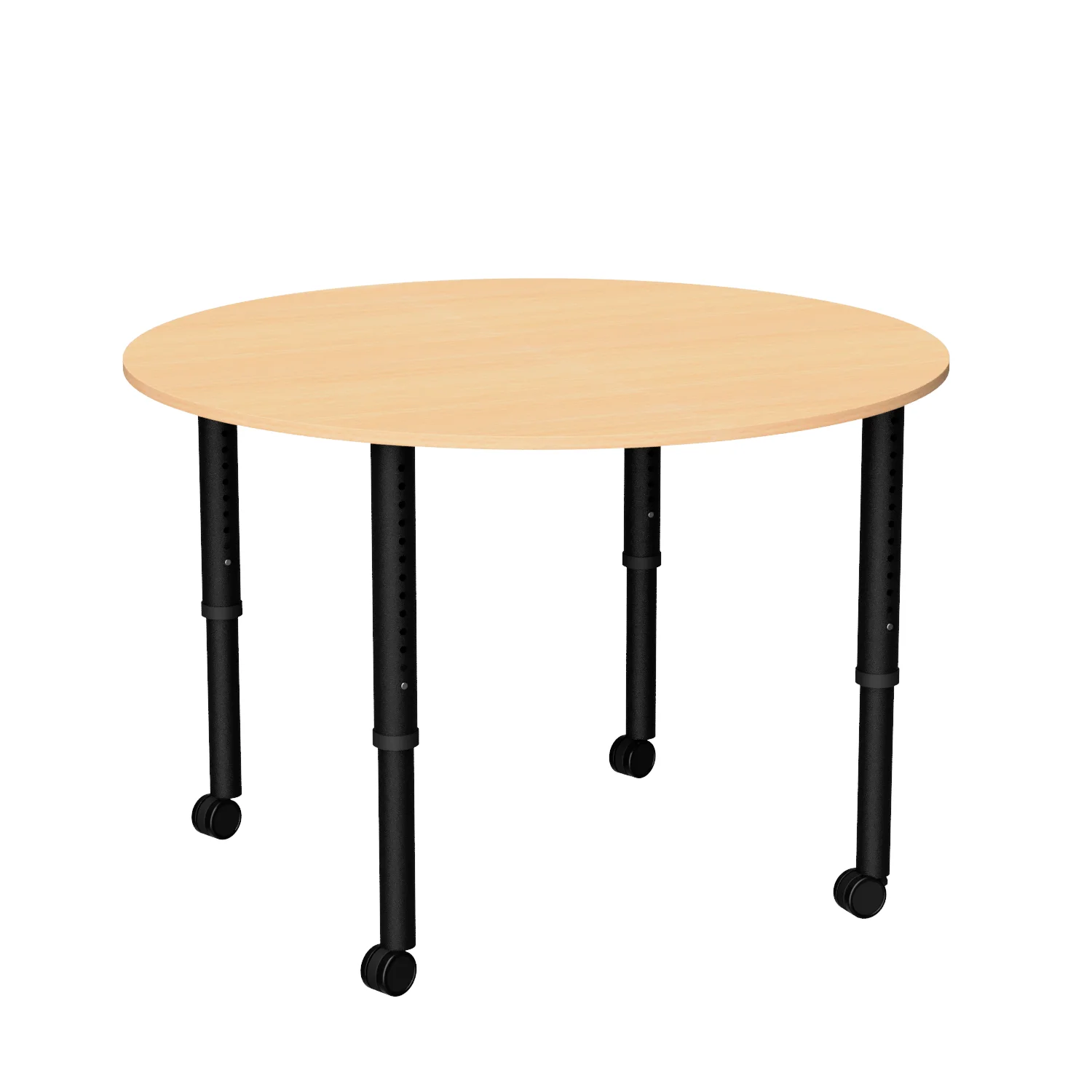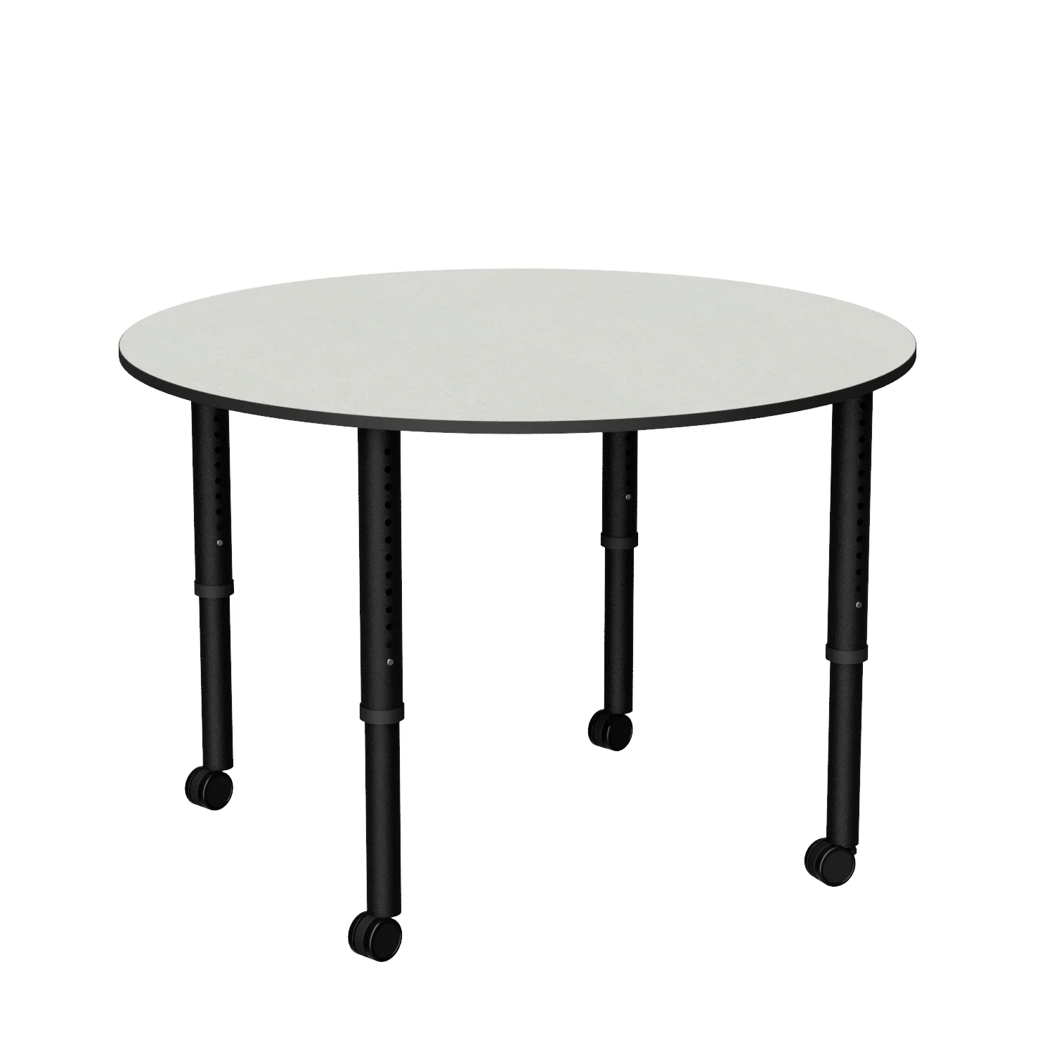 The Revolution Round is a height adjustable round classroom table, ideal for libraries and tutoring spaces with four easy-adjust legs on glides or castors.
